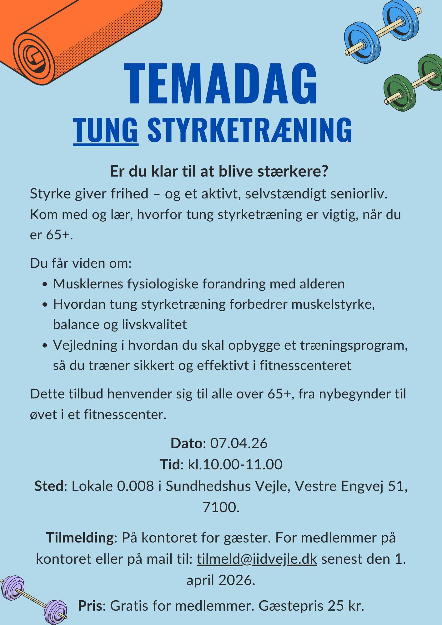 Du vil få viden om sarkopeni, begreber til træning og information om tung styrketræning.